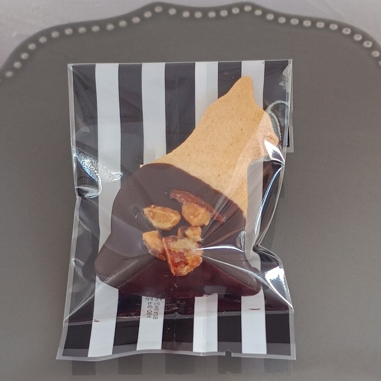チョコがけのねこのクッキーにキャラメリゼしたアーモンドをトッピングしました。